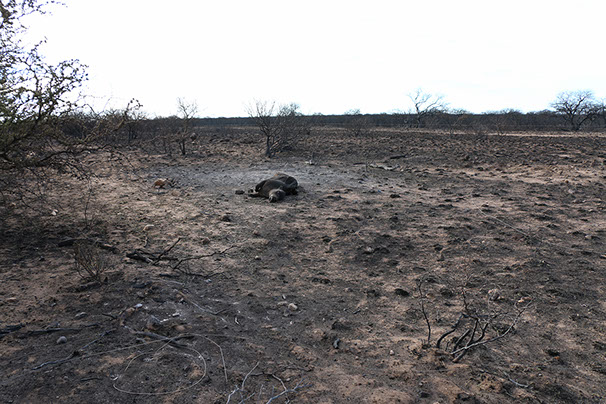 Animales calcinados por el fuego que es causa de las políticas llevadas a cabo por del gobierno argentino y su Ministro de Ambiente Sergio Bergman. Hemos borrado de la foto uno de los animales debido al impacto desgarrador y conmocionante de la escena.