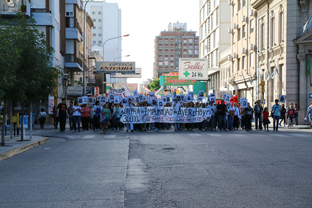 “Que la memoria nos ayude para que lo simbólico no nos tape lo real. Por la memoria de nuestros compañeros y compañeras desaparecidos. Queremos orientar nuestra reflexión hacia el significado de un hilo conductor histórico. Desde el: “seamos libres, lo demás no importa nada” de nuestro general San Martín, pasando por el “Liberación o dependencia” de los 70 queremos llegar a nuestros días. Desde nuestra mirada, luchar hoy por la emancipación de nuestra patria, por el futuro para nuestros hijos e hijas tiene que ver, directamente, con recuperar nuestros recursos naturales, todos, los de las islas Malvinas y los de la plataforma marítima y continental, con no permitir el saqueo producido por empresas transnacionales, con ser un país con soberanía energética y con soberanía alimentaria, que proteja el medio ambiente, que favorezca el desarrollo cultural y social y los derechos humanos de todos sus habitantes. Como hay tanto por hacer, creemos que el 24 de marzo es un día de homenaje, de reflexión, de construcción. El mejor homenaje que podemos hacer hacia los desaparecidos es trabajar para que el avance producido en el campo del poder judicial con el desarrollo de los juicios a los genocidas se traslade al campo de la economía donde las consecuencias de la dictadura afectan directamente a gran parte de nuestros hermanos. El proceso iniciado por Jorge Rafael Videla y que continuó en otros gobiernos democráticos vino a ahondar nuestra dependencia. La deuda externa fue contraída ilegal e ilegítimamente mientras se asesinaba impunemente a miles de argentinos. La represión fue un paso necesario para endeudar a nuestro país y acentuar su dependencia. Gobiernos democráticos, un poco más tarde, continuarían con este plan efectivizando el saqueo mediante entregas y privatizaciones. Por todo esto el “no pago de la deuda” no es una consigna vacía ni panfletaria sino que representa directamente el dolor de las muertes, las de los desaparecidos y las de las muertes evitables que se produjeron durante todos estos años. Y es una consigna con un gran valor histórico que no olvidamos los que venimos con esta lucha desde la dictadura. Nos parece bien que se haya bajado el cuadro de Rafael Videla, pero no nos parece bien que se pague la deuda al Club de París, contraída durante la dictadura. Esta deuda se paga con nuestras reservas que deberían usarse para necesidades urgentes e imprescindibles para el bienestar de toda la población. Con su pago se van los esfuerzos y el trabajo de los argentinos. El significado de este proceso está perfectamente denunciado por Rodolfo Walsh en su carta abierta a la Junta Militar del 24 de marzo de 1977, carta de la que justamente hoy se cumplen 35 años.” 24 de marzo de 2012